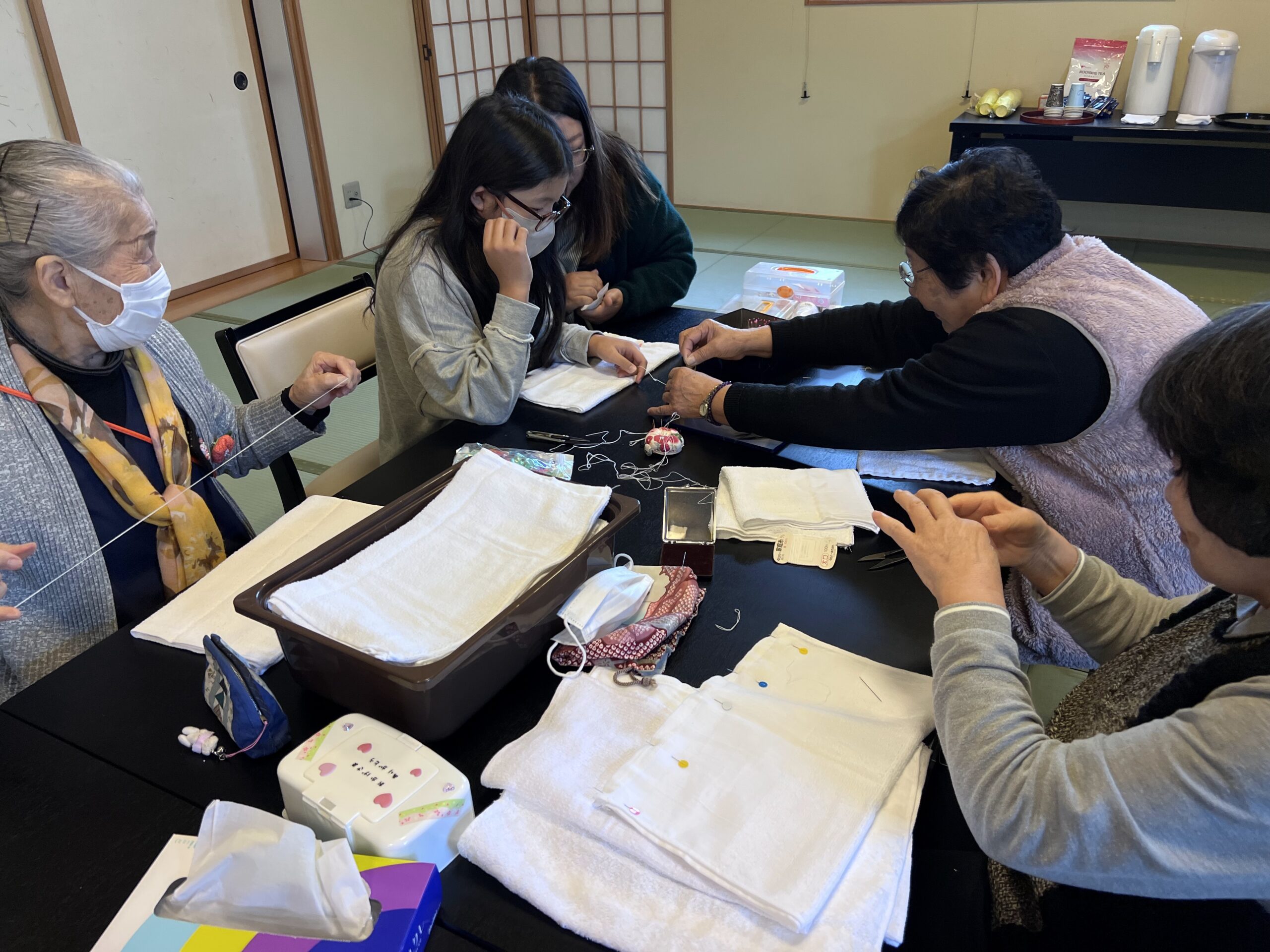 - 雑巾づくり: 「昔はよく縫い物をしたわね」と懐かしむ声も。一針一針丁寧に縫い進める作業は、集中力とともに、自然と昔話に花が咲くきっかけにもなりました。
