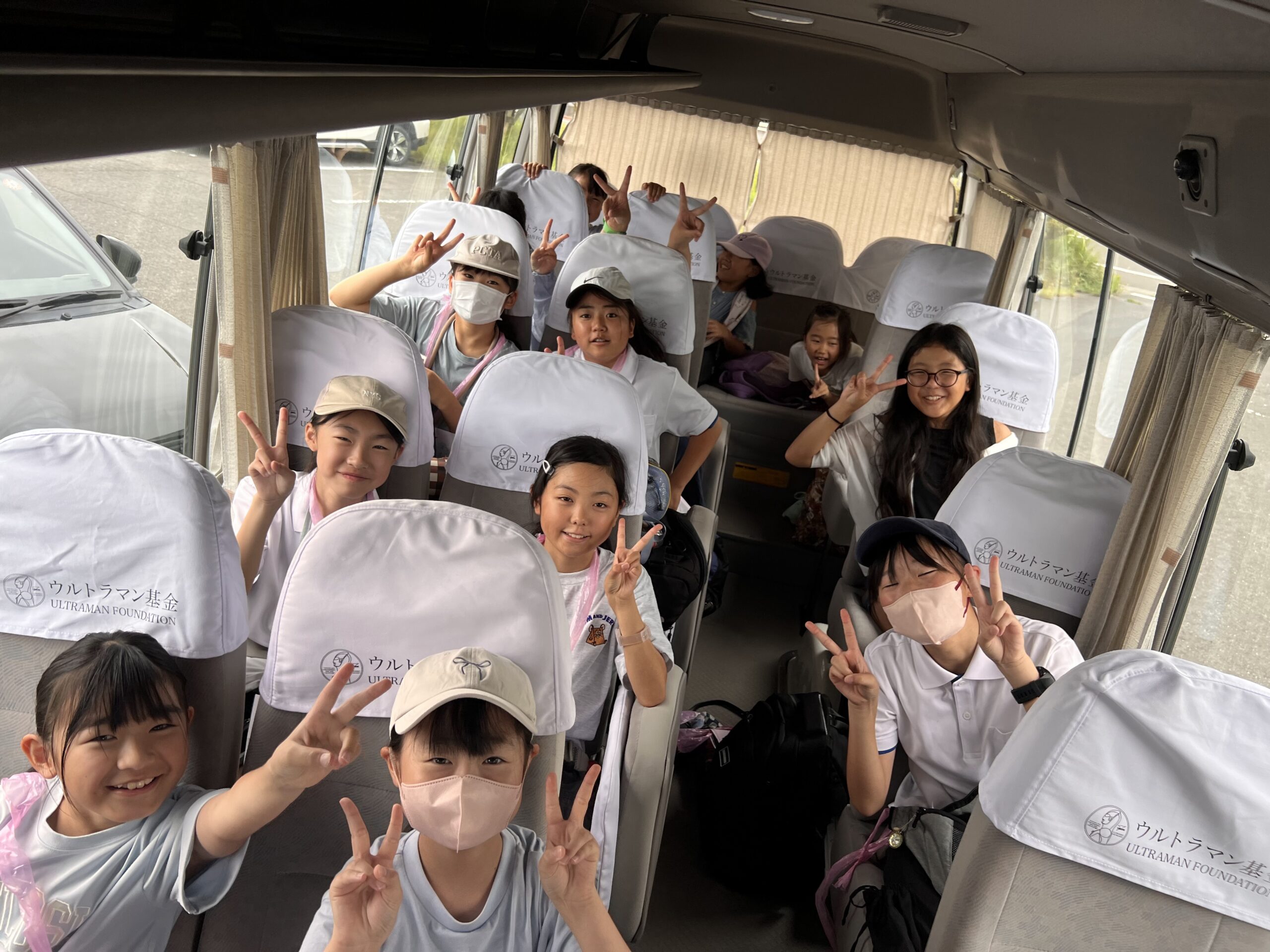 一人ひとり、自分たちが描いたイラストが入った栞を首に下げて、東松島市役所から出発いたしました。