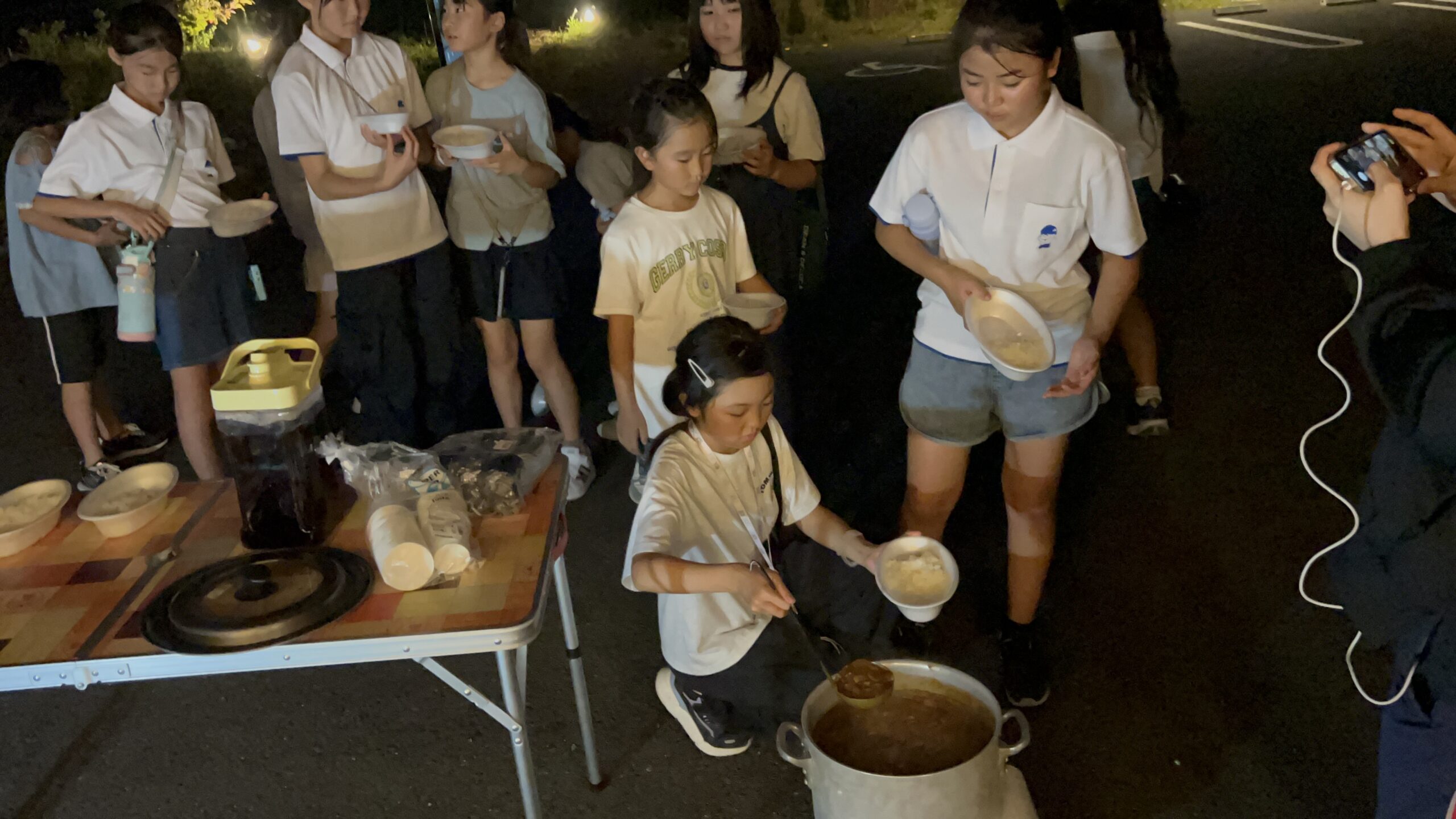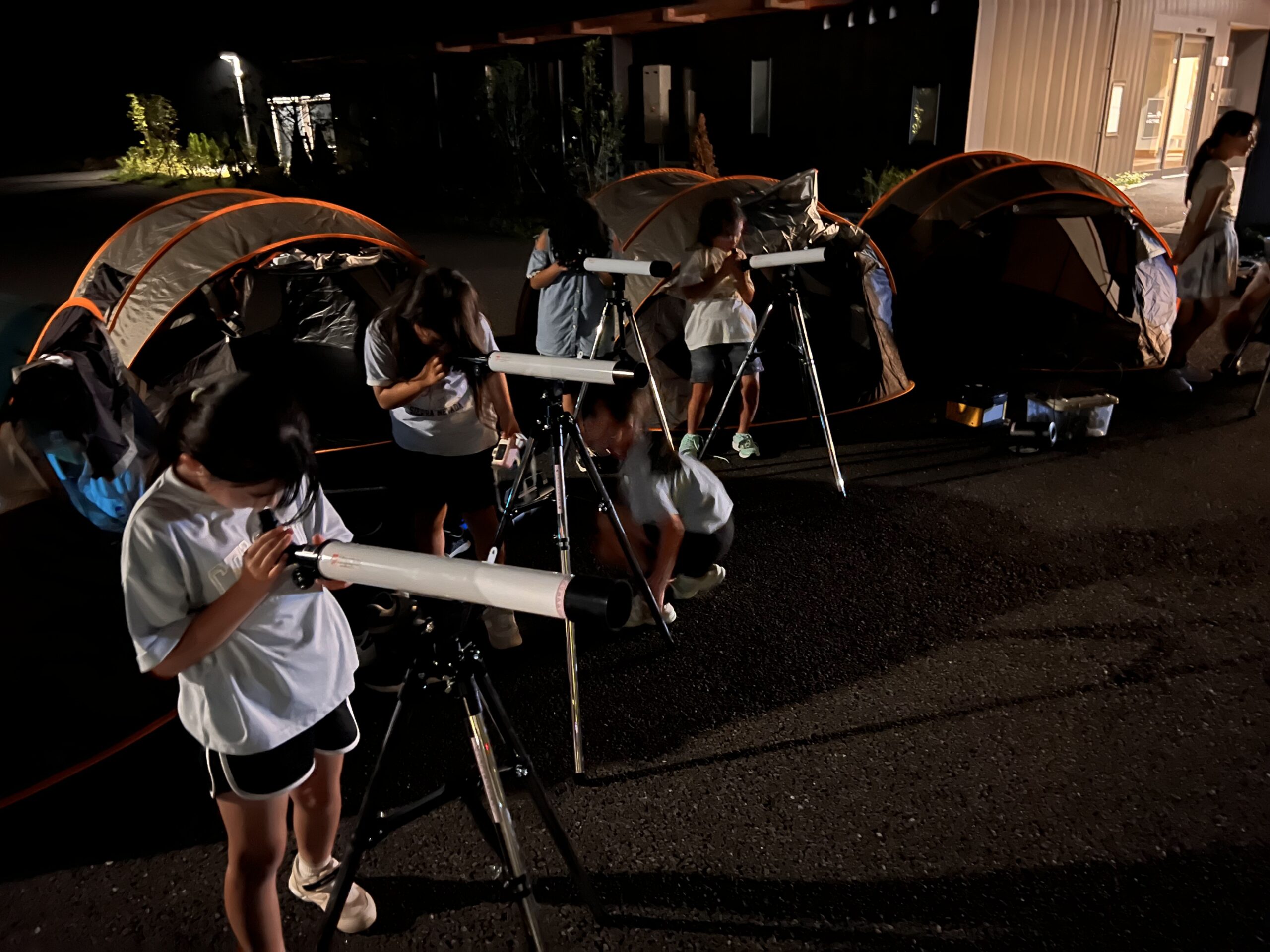 いろどりの丘にて、カレーの料理体験、そして星皿観察を行いました。あいにく、曇り空のためほとんど星を見ることはできませんでしたが、野外映像にて星や宇宙について勉強をした後、望遠鏡をのぞいて星を探すという一連の体験によって、学校の理科の授業が少しでも好きになってくれることを切に願います。