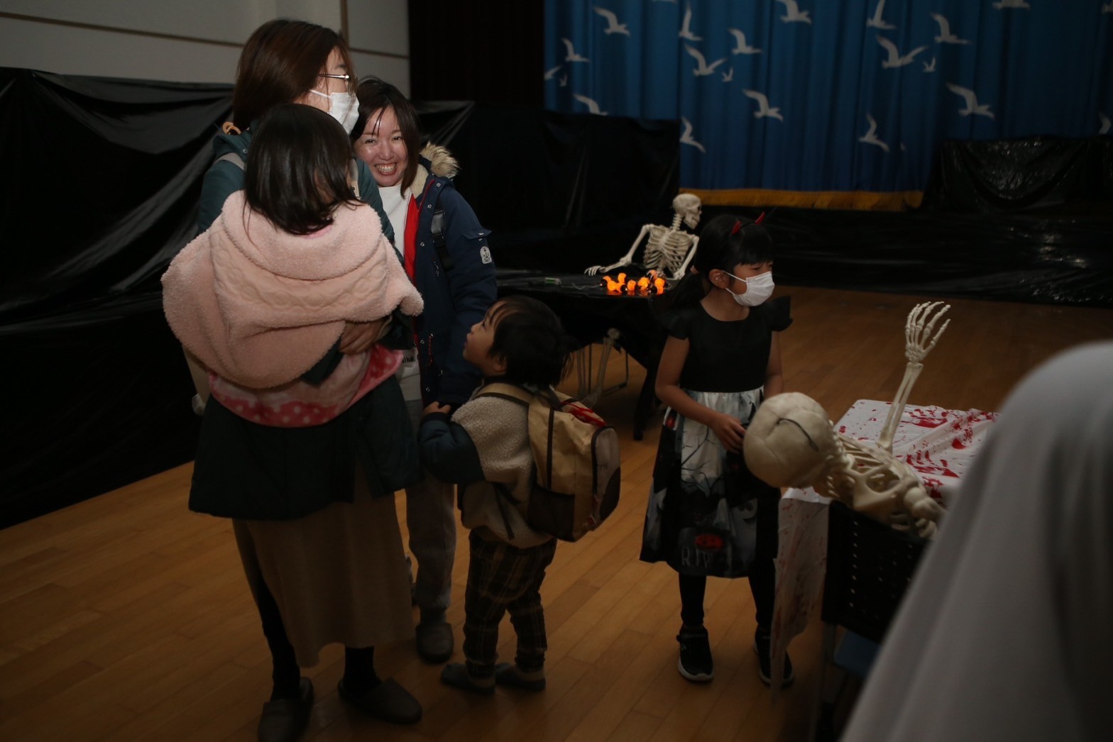 おばけ屋敷という非日常体験に対し、実社会における不審者と遭遇した場合、地震などの天災が発災した場合等の心理状況や行動を観察・推測し、緊張感のある場面での判断力や行動力を養い、社会性や危機対応能力の向上反応する力を伸ばします。