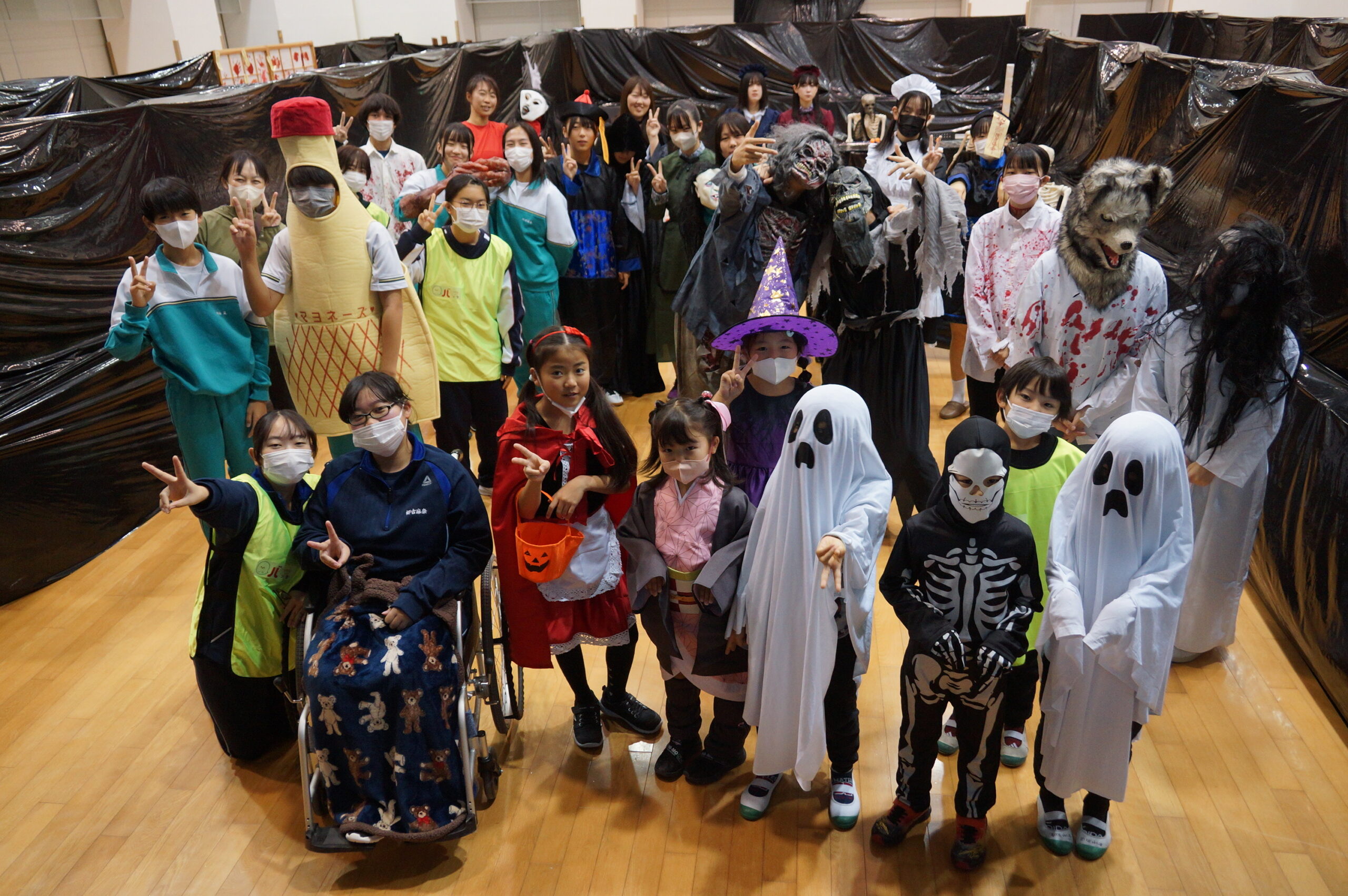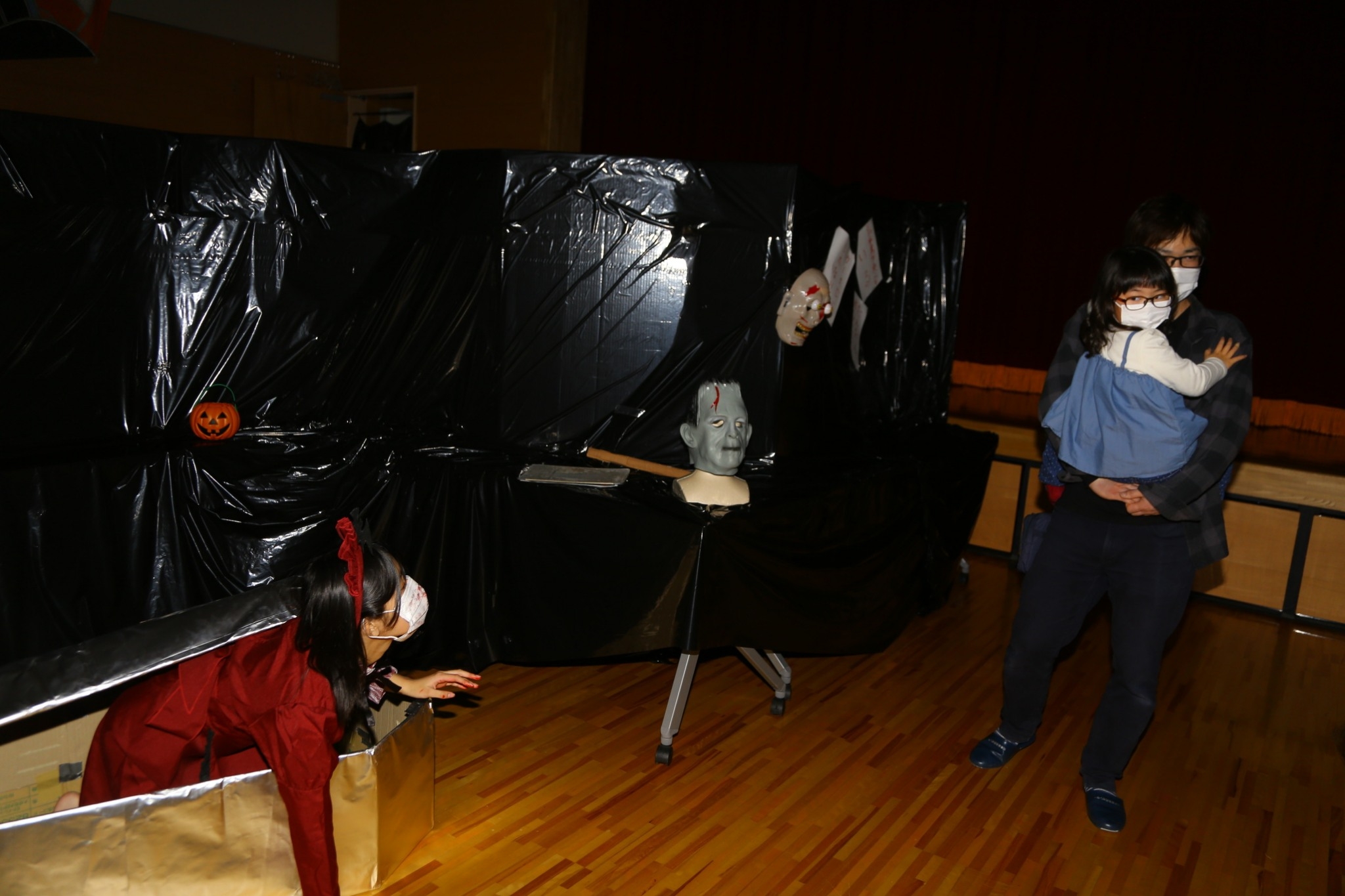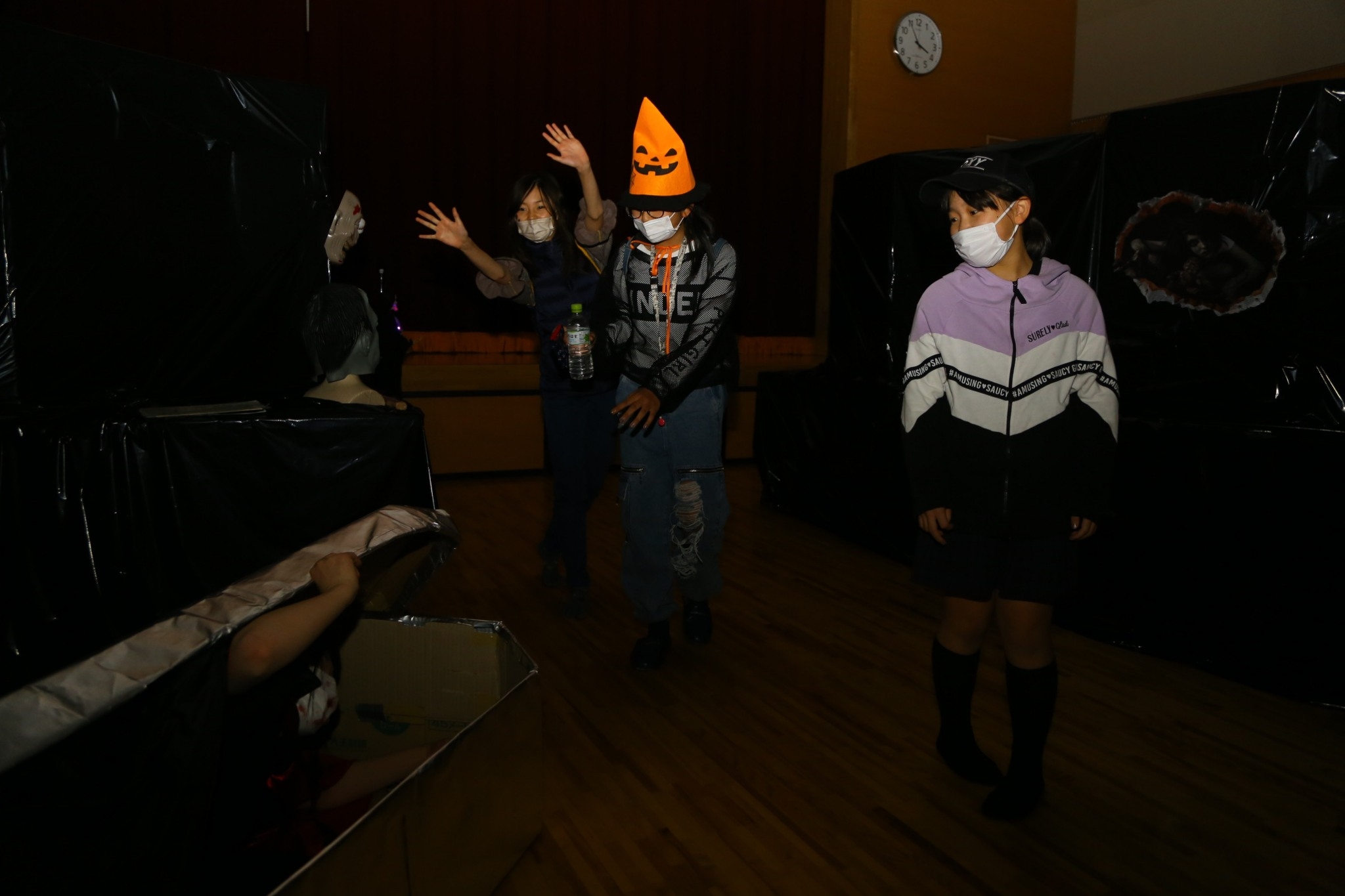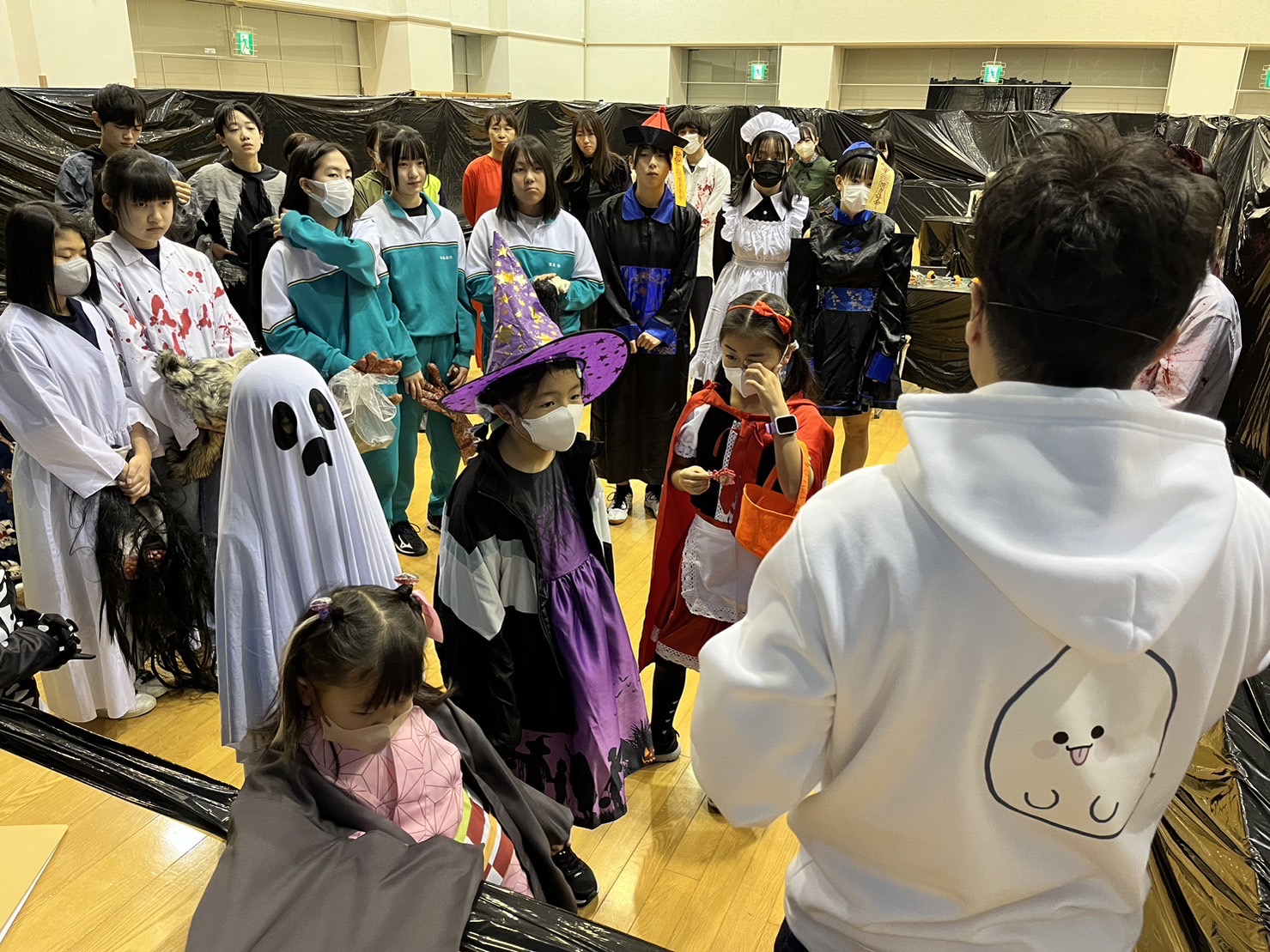大曲市民センターにて、「ちょっと怖いエリア」「すごく怖いエリア」に分け、こども実行委員では「ちょっと怖いエリア」をプロデュースし、ギミックを駆使しながら多くのお客さんに体験するきっかけとなりました。